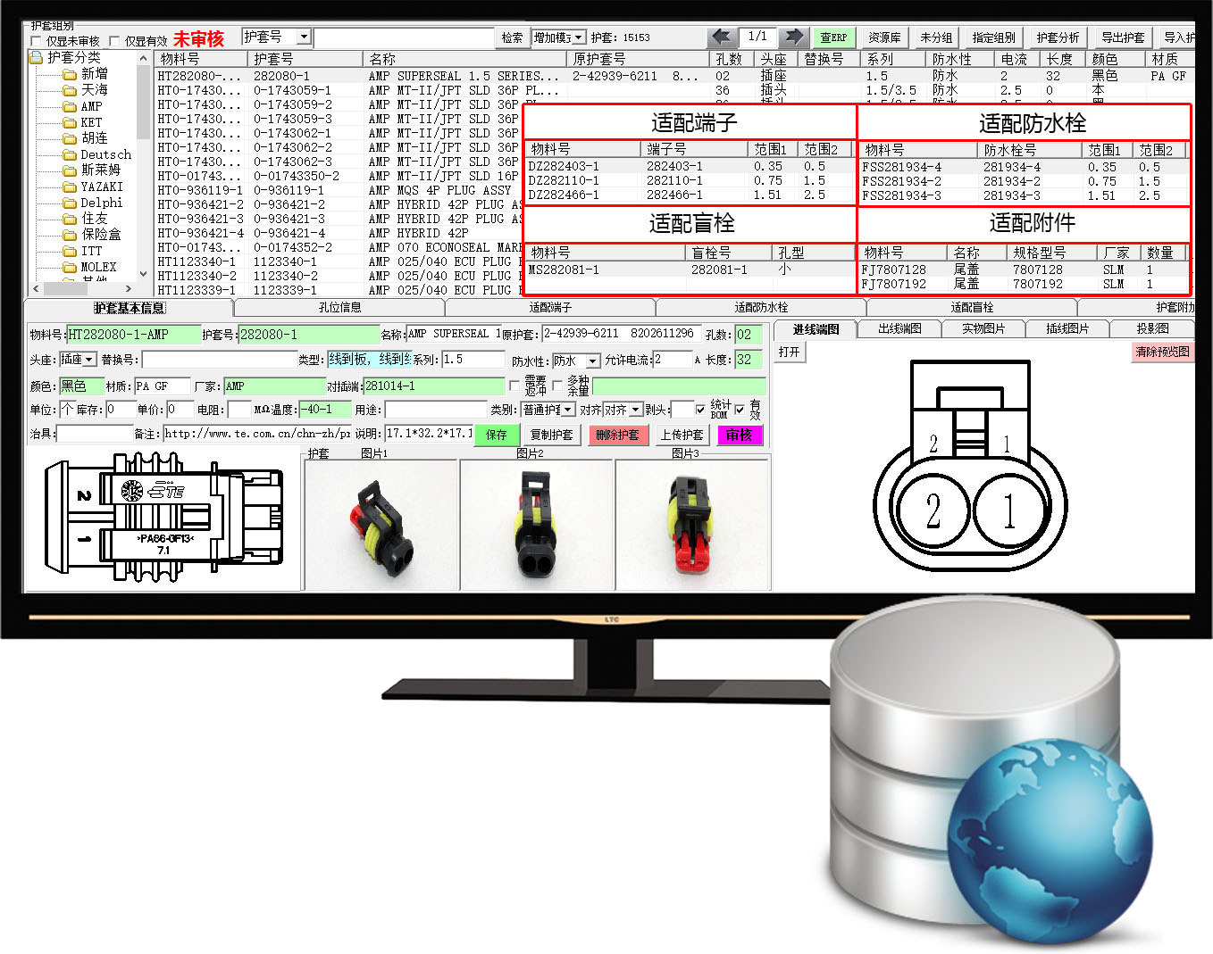 對護套及其適配信息、端子、防水栓、盲栓、包扎材料、卡扣等基礎信息的便捷管理,實現線束工藝設計信息資源共享,為軟件的各種自動化功能提供數據基礎,并為工程師提供準確的工藝設計技術標準,確保線束圖紙設計和工藝結果的規范性和正確性。