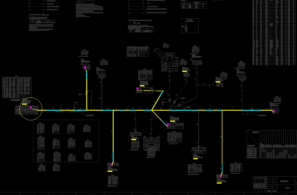圖紙打印輸出前,軟件可對圖紙進行快速格式化,如統一護套描述、線號、線徑、線色字體樣式等,可一鍵完成對各護套的視圖轉換,便于車間生產參考。